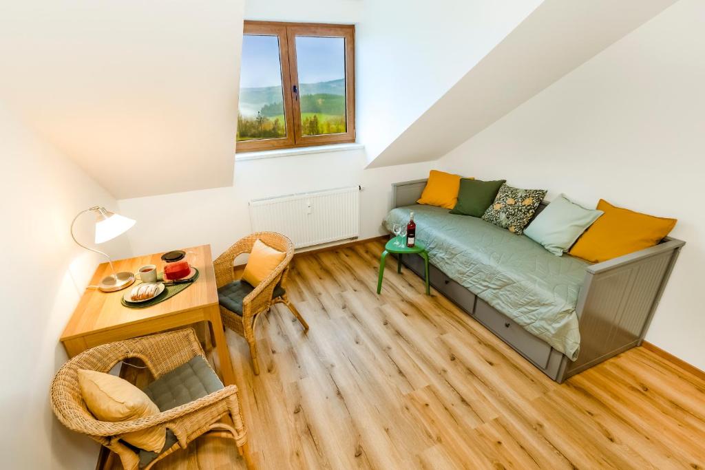 Situated in Vacov, Benešovka features accommodation with private pool, free WiFi and free private parking for guests who drive. This apartment offers a garden as well as a shared lounge. Boasting family rooms, this property also provides guests with a picnic area.